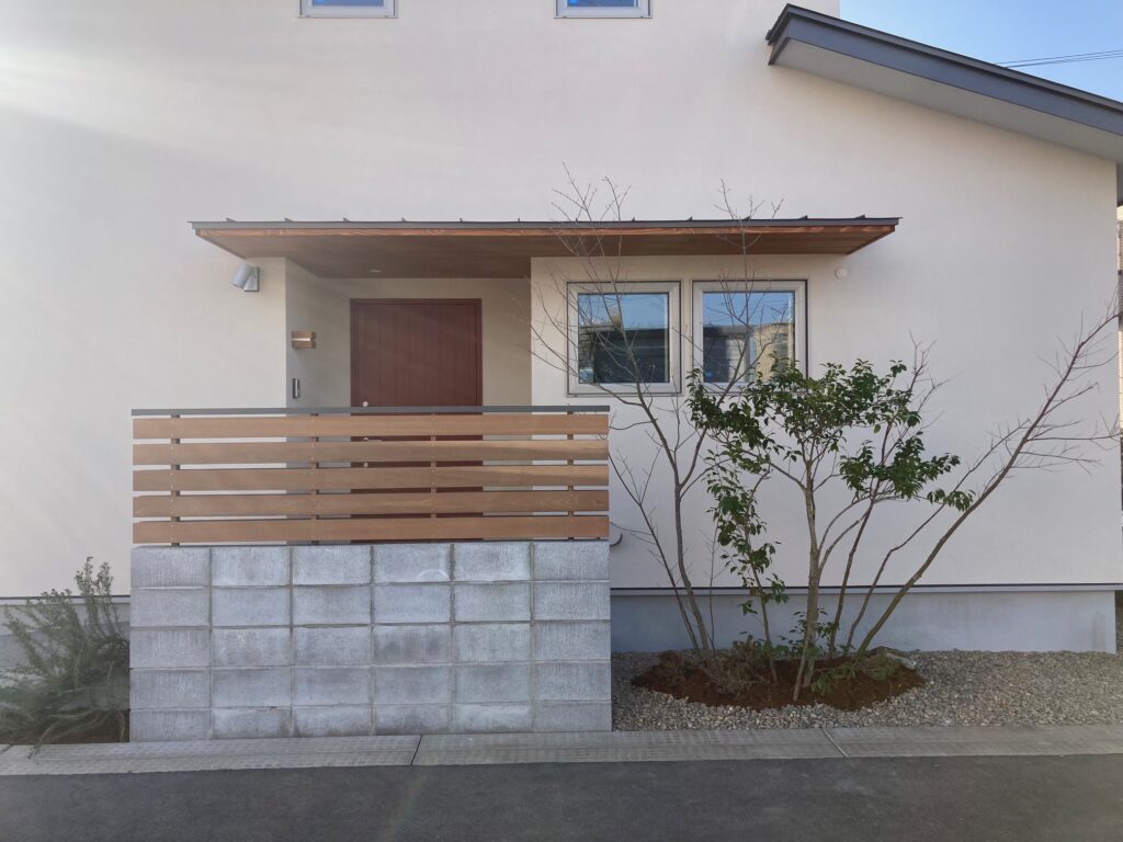 注文住宅の場合、現場を進めながら施主と打ち合わせして決定していく工事もあるので、工務店の予定通りには工事が進まないこともあろうかと思いますが、折角見学会を開催するなら外構工事まで完了していると外観の映え方がまるで違いますね。改めてそう感じました。