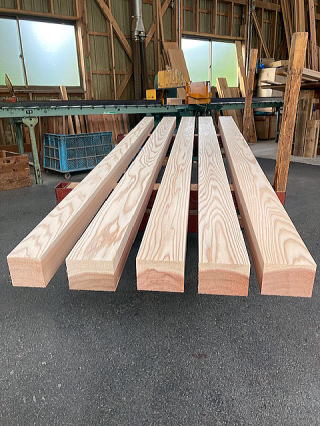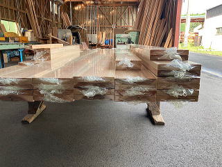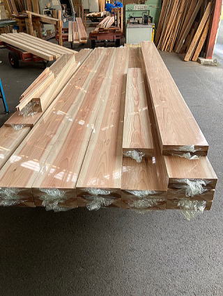 杉の造作材は傷が付きやすいので、梱包時にはしっかりと固定されるように注意を払います。あとは運送屋さんが荷下ろしするときに材料をぶつけて傷にならない様にひたすら祈るのみです(笑)