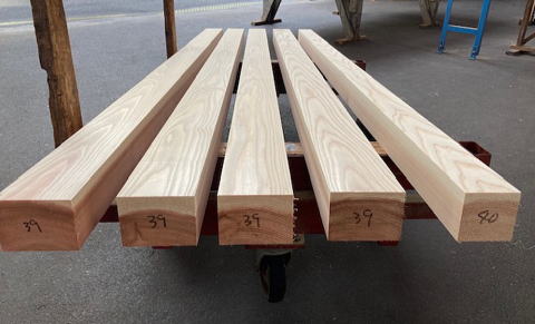 小口には加工明細書と同じ番号が書かれます。現場の大工さんが材料を探す時間がなるべくかからない様に明細書に使う名称もご注文を頂いた明細のままにしています。
