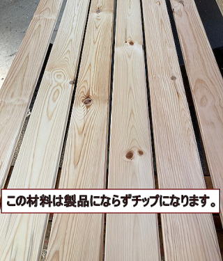 地松に理解があり、さらに床板以外なら使い道があろうかと思いますが、狙って作るものではなく、宣伝するほどの量が出来ないため今のところチップにしてしまっております。