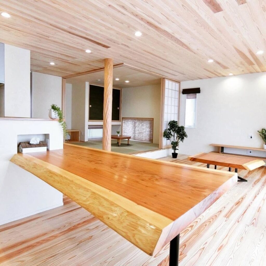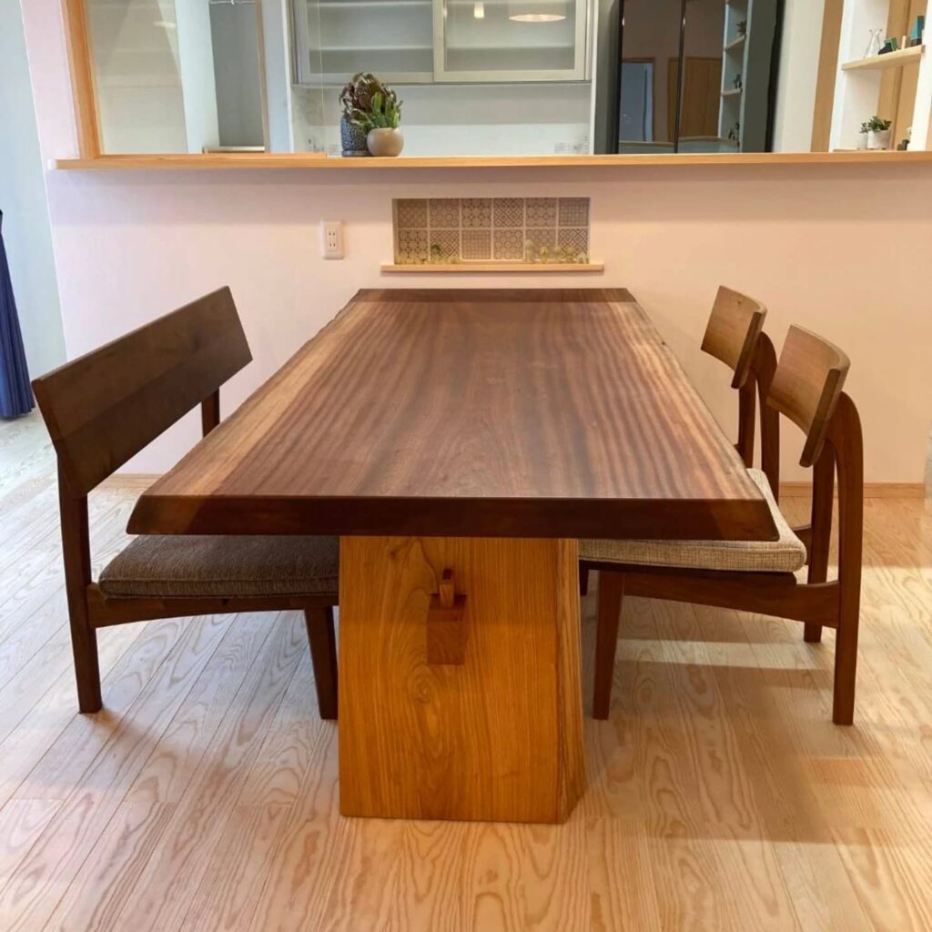 幅広一枚板のテーブル