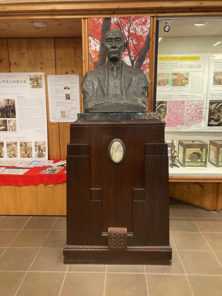 中に入ると銅像があり、説明を読むと上野英三郎先生の銅像でした。上野先生は日本の水田の区画整理に多大な影響を与えた功労者で、さらにあの忠犬ハチ公の飼い主だったのです。