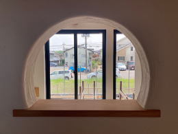 枠を設けずに丸く塗り込んだ開口部がその一つです。