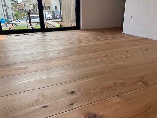 また、1階の床板は厚み30㎜×幅230㎜のやみぞ杉が貼られていて、とても高級感がありました。