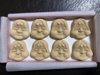 さらに手彫りの型で作ってあるので、おかめの表情が全て違うのがとっても癒されます。当時の職人さんの手作りの豊かさが伝わってくるんです。