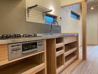 キッチンも造作で、一緒に見学した㈱オーガニックスタジオの田中社長と(有)伴工務店の伴社長も興味深そうに覗き込んでいらっしゃいました。