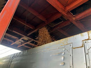 チップサイロの下にトラックを止めてチップを上から落とす訳ですが、今年のように残暑が厳しいとチップサイロの中は相当な温度になっていると思います。