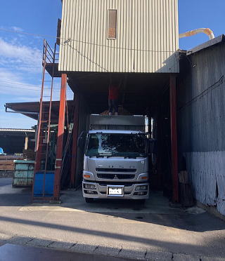 今日も業者さんが大型トラックでチップを回収してくれています。