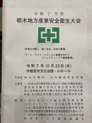 10月22日(水) 令和7年栃木地方産業安全衛生大会が宇都宮市文化会館にて行われ、益子林業はこの度、林業・木材製造業労働災害防止協会(林災防)栃木県支部の安全優良事業場賞の表彰を受賞いたしました。