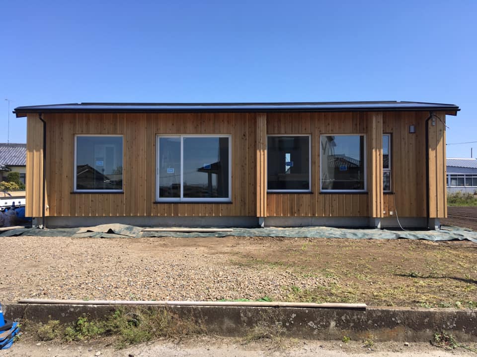 施工事例 八溝(やみぞ)杉の外壁 栃木市の新築現場へ納品に伺いました。八溝(やみぞ)杉の外壁材の施工が随分進んでいました。この赤身の色が均一で美しいのが、八溝杉の特徴です。それはさて置きこの現場の仮設トイレが綺麗で感銘を受けました。現場が始まって数ヶ月経ちますが、この状態を保っているのは大工さんがまめに掃除をしている証です。 2020.04.25 施工事例
